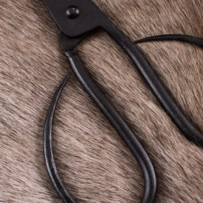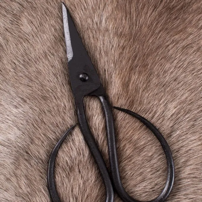 Eine praktische Schere, die leicht zu halten, für kleine und große Hände, ist ideal zum Schneiden von Gewebe, Faden und anderen Materialien. Diese Schere basieren auf mehreren Originalen. Schere sind seit dem fünfzehnten Jahrhundert vor Christus verwendet, und es ist eines der ältesten Utensilien der Menschheit. Auch Modelle ähnlich wie moderne Friseurscheren wurden bereits in Mesopotamien verwendet! Dieses Modell der Schere nahezu unverändert seit dem dreizehnten Jahrhundert blieb. Diese Scheren sind aus Stahl handgeschmiedet. Sie sind voll funktionsfähig und ein nettes Tool, wenn Sie in die historische Kunsthandwerk und Nähen sind, und für Reenactor ihr Handwerk in der Öffentlichkeit zeigt.