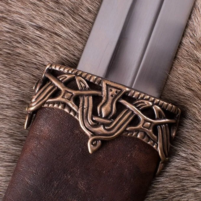 Möchten Sie machen wollen eine grundlegende Scheide schönere eine luxuriöse Schwertscheide selbst oder machen? Sie können diese losen Teil an der Spitze einer Scheide befestigen oder verwenden Sie es als Ersatzteil für die Schwertscheide. Es ist in dem frühmittelalterlichen Viking-Art-Stil eingerichtet.