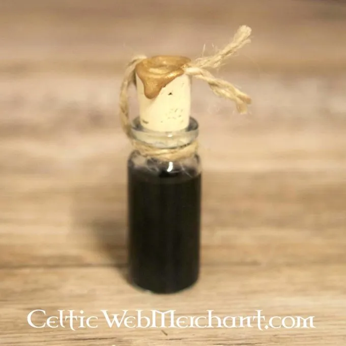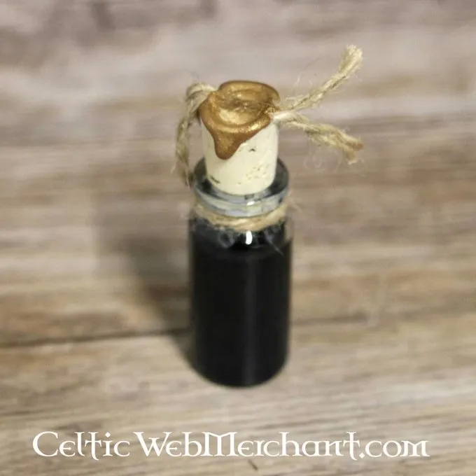 Diese Tinte ist aus einem Originalrezept unter Verwendung von Galläpfel, Gummiarabikum und Eisensulfat. Die Rezepte für Tinte waren ein streng gehütetes Geheimnis in Altertum und Mittelalter, aber es ist möglich, sie zu rekonstruieren. Diese Tinte wird mit einem Rezept aus dem 3. Jahrhundert vor Christus hergestellt. Die Tinte ist braun, wenn Sie es auf Papier oder Papyrus setzen, aber wird schwarz, wenn sie vollständig getrocknet. Eine Glasflasche enthält 10 ml. Die Flasche wird mit einem Korken verschlossen, und eine Dichtung, die Gott Mercury zeigt.