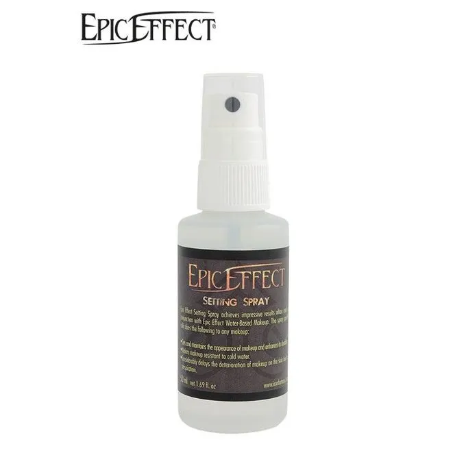 Das Epic Effect Einstellung Spray, 50 ml, wird zum Sprühen über Ihr Make-up gedacht. Es stellt eine Schutzschicht und sorgt dafür, dass Ihr Make-up festgelegt bleibt. Das Spray macht das Make-up wasserdicht und resistent gegen Transpiration. Nach dem Gebrauch kann das Spray mit milder Seife und lauwarmem Wasser entfernt werden. Bitte beachten Sie: die Spray 30 cm von Ihrem Make-up halten. Nicht in die Augen sprühen!