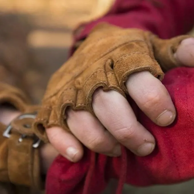 Diese praktischen fingerlosen Handschuhe bestehen aus weichem und bequemem Wildleder. Benötigen Sie Schutz oder Erwärmung der Hände, gleichzeitig aber maximale Flexibilität der Hände und Finger? Dann passen diese Handschuhe perfekt zusammen. Die Handschuhe haben handgenähte Nähte, wodurch das Material haltbarer wird und weniger reißt oder beschädigt wird. Um das Handgelenk befindet sich eine Schnalle zum Befestigen des Handschuhs. Diese Handschuhe sind ein tolles Accessoire für jedes Kostüm.