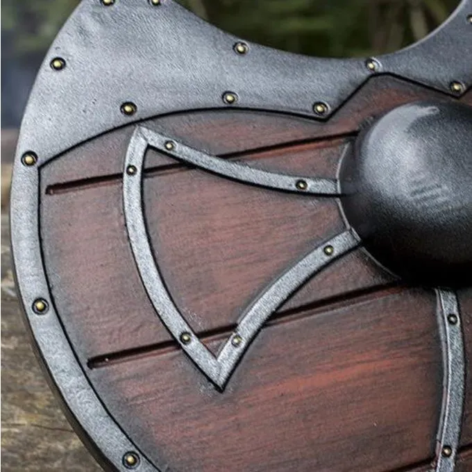 Dieses Larp Schild ist nach historischen Stücken gemacht. Diese LARP Schild ist handgefertigt und gefärbt, so dass jedes Stück ein Unikat ist. Aufgrund des Materials empfehlen wir nicht, es in der Sonne für längere Zeit verlassen.