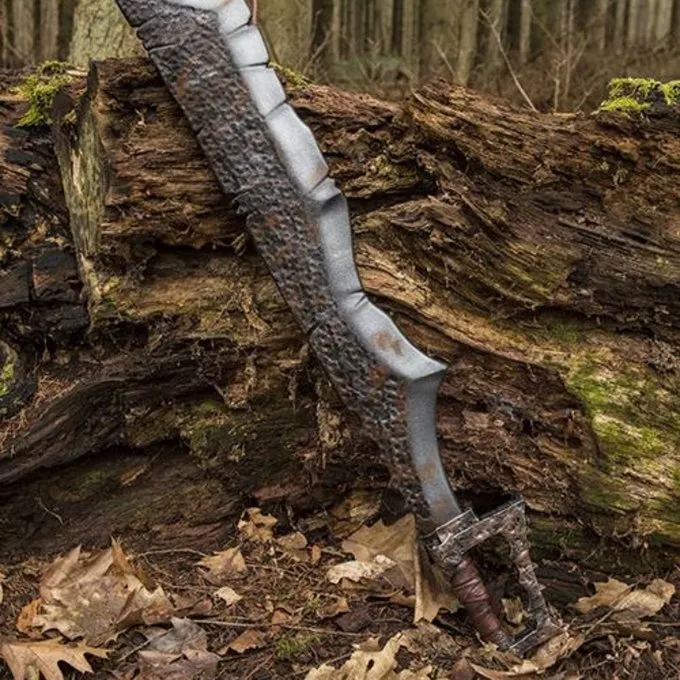 Material: Fiberglas, EVA-Schaum, Latex / Geeignet für LARP Schlachten / Länge: 100 cm / Grifflänge: 12 cm / Klingenlänge: 80 cm / Klingenbreite: 12 cm / Querschutzbandbreite: 13 cm / Umfang Griff: 10 cm / Gewicht: 430 Gramm