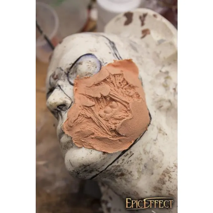 Sie können diese hochwertige Latexprothese auf Ihrem Gesicht mit Zahnheilkleber oder Mastix Spirit GUM kleben. Damit machen Sie ein Zombie-Gesicht mit einer zerrissenen offenen Wange. Sie können es wiederverwenden. Perfekt für Halloween und Larp mit Zombie-Charakteren. Diese Prothese kommt in der Hautfarbe und mit dem epischen Army-Make-up, das Sie in den gewünschten Farben malen können.