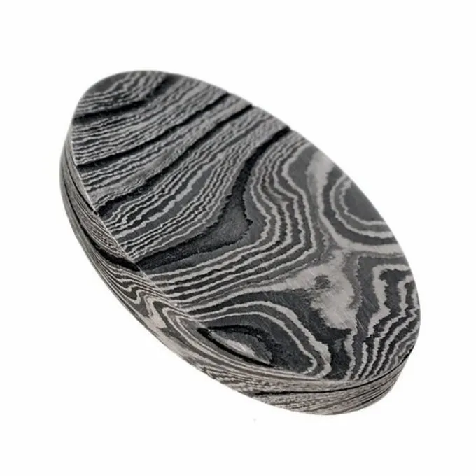 Diese Damaszener Stahl Scheibe ist perfekt, um Messer selbst. Diese Scheibe für den Handgriff ist aus verschiedenen Schichten aus Kohlenstoffstahl. Dies gibt das Messer eine solide und dekorative Oberfläche. Das ursprüngliche Verfahren zur Herstellung von Damaszener Stahl aus Wootz Stahl wurde in der modernen Zeit verloren. Heutzutage ist der Name Damaszenerstahl als Oberbegriff für Muster verwendet verschweißten / laminierte oder geschmolzener Stahl aus zwei oder mehr verschiedenen Stahltypen.
