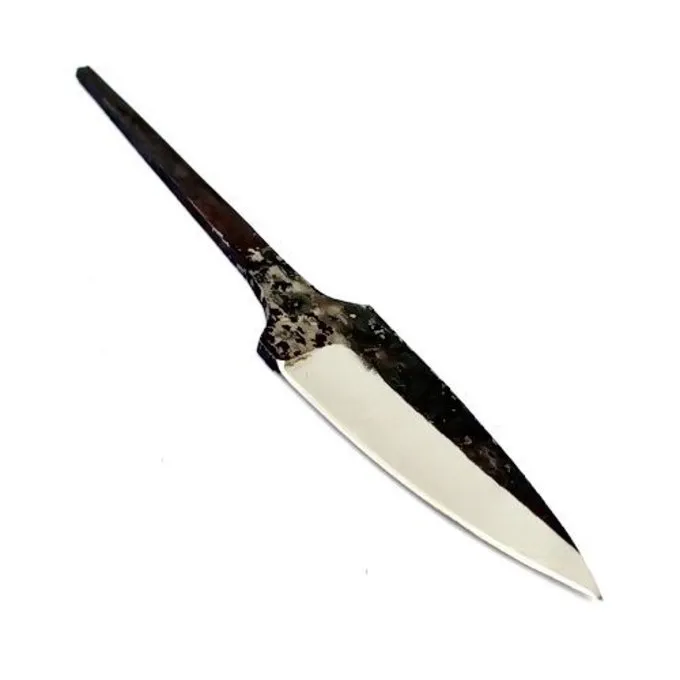 Dieses Messer handgefertigt aus Kohlenstoffstahl. Seine Härte ist 54 HRC, es hat eine Länge von 18 cm und einer max. Breite von 3 cm. Es hat eine scharfe Schneide und die stumpfe Seite hat eine Dicke von 0,3 cm.
