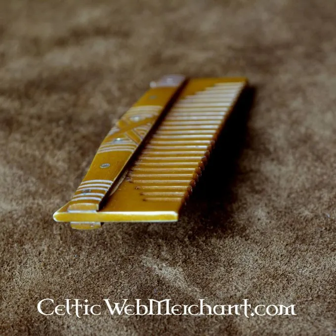 Dieser handgemachte Replik ist aus natürlichen Knochen. Er misst 12 x 4 x 1 cm und ist mit Bronze Nägel gebaut. Diese Technik der Kamm Herstellung wurde bereits von den germanischen Stämmen eingesetzt.